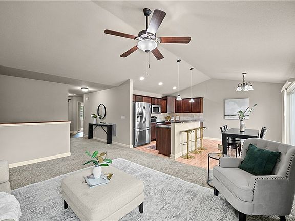 The exterior showcases stone detailing and maintenance-free vinyl siding. Step inside to find an inviting layout seamlessly connecting the front bedrooms & bathroom to the family room w/ cozy gas fireplace. Next youll find the kitchen, complete w/ granite countertops, center island & dining area that leads to an oversized deck through sliding glass doors. Retreat to the primary suite, including en-suite bathroom w/ granite vanity & large walk-in closet.