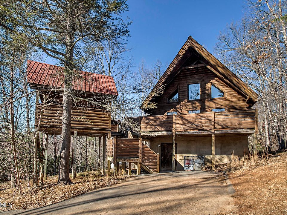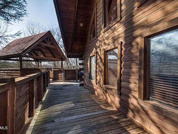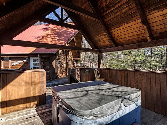 Beautiful, spacious short-term rental cabin in the well-planned popular community of Sky Harbor! This 1 ½ story w/basement home has 1 bedroom, and 1 full bath is conveniently located between Gatlinburg and Pigeon Forge, comes fully furnished, and has a great open floorplan with beautiful hardwood floors and the master bedroom on the main level. Kitchen is open to a spacious great room w/cathedral ceiling, exposed beams, and a beautiful stone covered fireplace with gas logs and huge floor to ceiling windows offering a peaceful wooded mountain view. Great room opens to a large, covered wrap around porch with rocking chairs and it leads to possibly the best hot tub in town... a hot tub in a tree on another covered deck. Large master bedroom on main level has an ensuite bathroom with a jetted tub and separate shower. Upstairs has the open loft with a pool table and access to another covered deck where you can relax and take in the beautiful views. All furniture and art convey. Basement offers great storage and great opportunity for more finished living space. Lovely mature trees provide privacy. The privately maintained paved roads, and convenient location that is minutes to many of the area's well-known attractions, including the Great Smoky Mountain National Park, Dollywood, Gatlinburg, Pigeon Forge, restaurants, and shopping have made this location a very popular short-term rental opportunity. This cabin has been meticulously cared for and is in top notch condition, and it offers an excellent investment opportunity, vacation home, or full-time residence. This cabin has grossed over $48,258+ (established bookings) in 2021, and over $45,751+ in 2020. Come see it for yourself... call for a showing appointment!