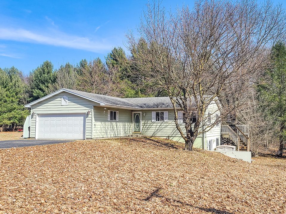 Experience the allure of this bright, naturally lit home just moments away from Greenville. The inviting hardwood floors guide you through this charming residence. French doors open to a deck in a private wooded 1.17 acre setting, providing a perfect blend of indoor and outdoor living. With 1 full bath and 2 conveniently located half baths, this home is designed for both comfort and practicality. Abundant closets offer ample storage space. Boasting a heated saltwater pool, making it ideal for relaxation and entertaining. A newer furnace and AC enhance the home's efficiency and comfort. The freshly remodeled walkout basement is a versatile space, with lower-level sliders opening to a patio and large yard. Find modern comforts with natural beauty in your new home.