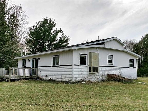 Well wooded 33 plus acre property fronting two roads located just south of town. The 1360 square foot home offers an open floor plan with generous sized rooms consisting of 2 bedrooms and 1 1/2 baths. The bedrooms include wall to wall closets and share the main full bath. The open kitchen dining area has ample cabinetry and counter space and a small movable island. Storage space is plentiful in this home as it offers several additional pantry style storage closets in the hallway, kitchen, and laundry area. This home also includes a new furnace (11/17). The laundry room and half bath are conveniently located off the kitchen and provides access to the large wraparound deck and yard. Please note that the seller is willing to contribute towards the cost of a new well via cash back at closing based on the sales price or reduction applied to the sales price. In addition to the main home there is another modular building (24'x32') accessible from Alabaster Road that can be remodeled into an additional home or used for storage. The property contains a mix of pine, thick cedar, and hardwoods with a natural water source and is surrounded by large parcels and farm land making this property ideal for hunting.