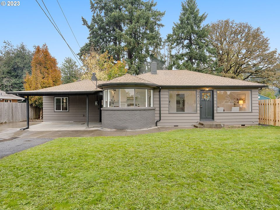Nestled in lovely Milwaukie, this absolutely charming + remodeled home boasting an exceptional level + fenced yard adorned by mature landscaping! Once inside, the open spacious floor plan showcases extra large windows providing an abundance of light to flood the home + bright walls and millwork provide an airiness throughout! Durable hard surface flooring flows seamlessly while neat turret detail creates a playful curved kitchen layout + white cabinetry, slab counters, stainless steel appliances + modern black hardware and fixtures round out the kitchen updates! Further find built-ins, vinyl windows + refreshed and stylish bathrooms! Outside is equally as nice with the spacious lot, carport, AC and amazing proximity to amenities! Less than 1 mile to Revilla Park with river access + blocks to popular restaurants, shops + more!