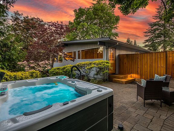 Hidden oasis in Multnomah Village that has not been available since 1995 with outstanding major remodels highlighting its' 1958 midcentury ranch architectural lines & features. 3 Bdrms/3 full Bths with main floor primary ensuite. Level easy access from driveway to front door, stunning professional grade kitchen renovated in 2015 with "soft-close" fir cabinetry, stainless top quality appliances, vaulted, beamed cedar ceilings, custom lighting, slab granite, and more deep kitchen drawers than a chef could hope for! The daylight level includes family room, 2 bedrooms, 3rd full bath, exterior entry and over 400 sq ft of a utilities and storage room that offers tremendous options to design a separate living area. This location, just a 3 block stroll to restaurants and shops in the Village, is highly desired along with offering quick commutes to the city center or westside suburbs on multiple routes. A great walking area with nearby "A" Park, Gabriel Park, community gardens, trails, and community arts center. The gorgeous mature landscape and flower gardens create a feeling of rest and respite either enjoying the seasonal views through the treetop windows or outdoors relaxing on one of the 3 paver patios at different levels of the yard. A grand outdoor fireplace/wood burning grill at the main patio and, new in Dec 23', a Hot Springs spa with saltwater filtration system on back primary suite patio enclosed with striking basalt retaining walls are just some of the updates and improvements made to this wonderful property. Please see included features and projects timeline list for further details. Level entry to front of home is accessed from the driveway on 25th Ave side of this corner lot. Welcome home to a Multnomah Village classic! [Home Energy Score = 5. HES Report at https://rpt.greenbuildingregistry.com/hes/OR10228951]