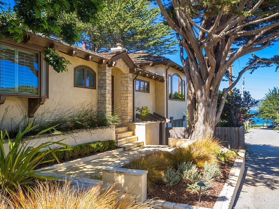 Light-filled home on an elevated, corner lot on coveted Carmel Point. The recently remodeled kitchen is open to the living and dining rooms and affords nice ocean views. Enjoy single level living with two bedrooms and two baths on the main level while guests can enjoy privacy with their own suite downstairs. The spacious master suite includes a walk-in closet, new bathroom and private patio. Location, views, style and character come together perfectly in this turn-key Carmel home steps to the white sands of Carmel Beach.