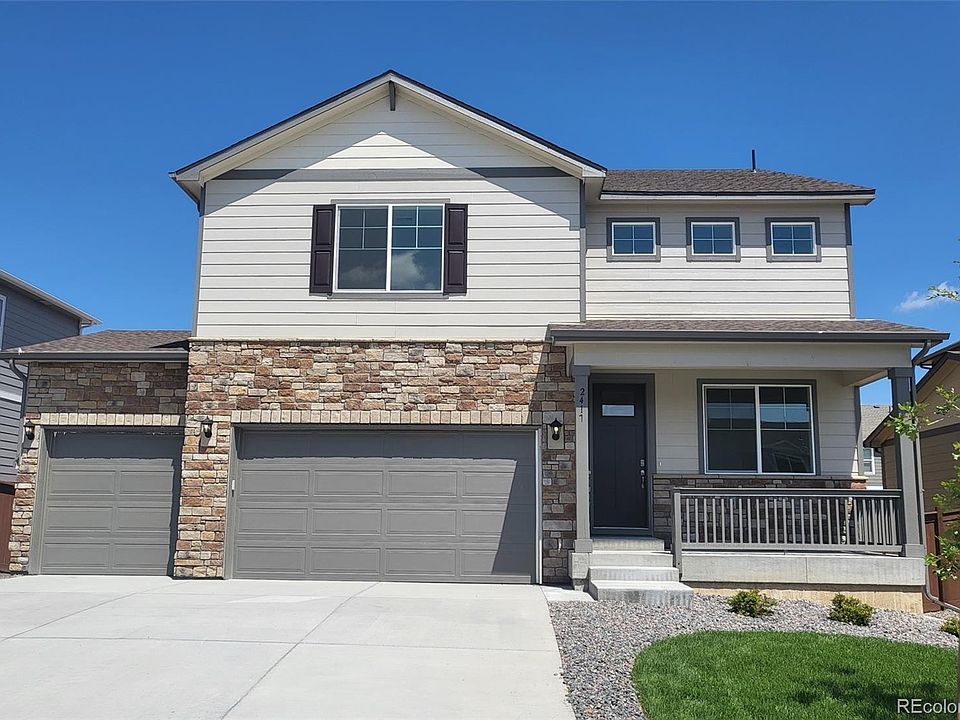 Home is COMPLETE! Lender incentives are available!!! Beautiful community with 5 parks, trails, and open space! This two-story, 3 car garage, open-concept home has 4 large bedrooms and 2.5 baths. The main floor features a beautiful kitchen with a large pantry and a very functional island and a wonderful study that can work as the perfect office space. Upstairs you'll find a spacious bedroom 1, with an en-suite bathroom that features a double vanity sink and a walk-in closet that will impress. In addition, you'll find three other bedrooms and massive living space, perfect for entertaining! The entry from the garage has a large closet space area conveniently located for coats and jackets. This home is an incredible value with all the benefits of new construction. This home includes Smart Home Technology, 9-foot ceilings on the main floor, stainless steel appliances, a tankless water heater, a high-efficiency gas furnace, A/C, and a passive radon mitigation system. ***Photos are representational and not of actual home.***