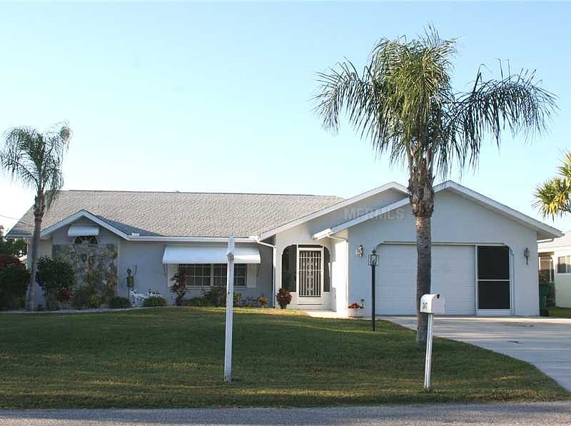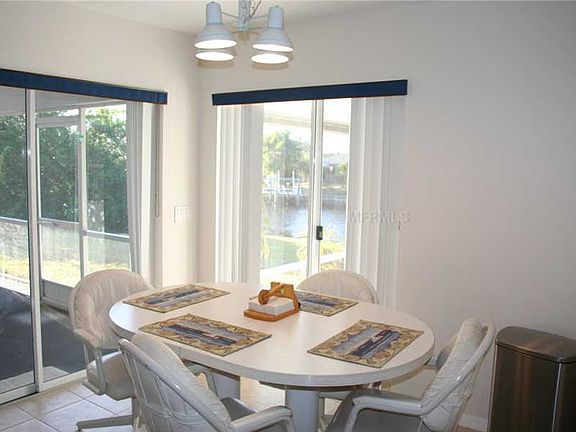 Just minutes to Charlotte Harbor from this beautiful canal front 3 bedroom, 2 bath, 2 car garage home. Relax on your own private dock or just watch the wild life. Spacious interior offers eat-in kitchen with breakfast bar, tiled flooring, closet pantry, domed lighting, newer appliances, and sliding glass doors to the lanai. Formal dining room has chair rail and sliding glass doors to the lanai, the living room has cathedral ceiling, ceiling fan and carpeted flooring, and family room has vaulted ceiling in with 2 ceiling fans. Master bedroom has carpet, ceiling fan and plant shelving. Master bath has large tiled shower and privacy commode. Large laundry room with tiled flooring and utility tub. Linen closet in hallway for extra storage. 2 car garage has newer overhead door, pull down stairs, newer garage door opener and sliding screen door. Roof was replaced in 2003, drainfield has been replaced and A/C was replaced in 2008!