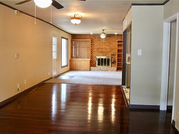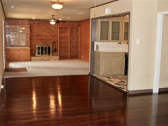 You won't want to miss this updated, spacious home on a heavily treed quarter-acre lot! Refinished hardwood floors greet you in the huge living room along with new carpet in the den and master bedroom. Built-in shelves and gas-starter fireplace in den. Master bath updated with fresh paint, new fixtures, flooring and newly tiled shower. Kitchen has new tile flooring & fresh paint. Refinished hardwood floors and fresh paint throughout 2nd & 3rd bedrooms. Wall removed what used to be between 3rd & 4th bedrooms so now is a huge 24x11 bedroom with two closets! Utility room with cabinet storage, dry bar and an ice maker! Large backyard with numerous mature trees. Garage and carport allow for plenty of parking.