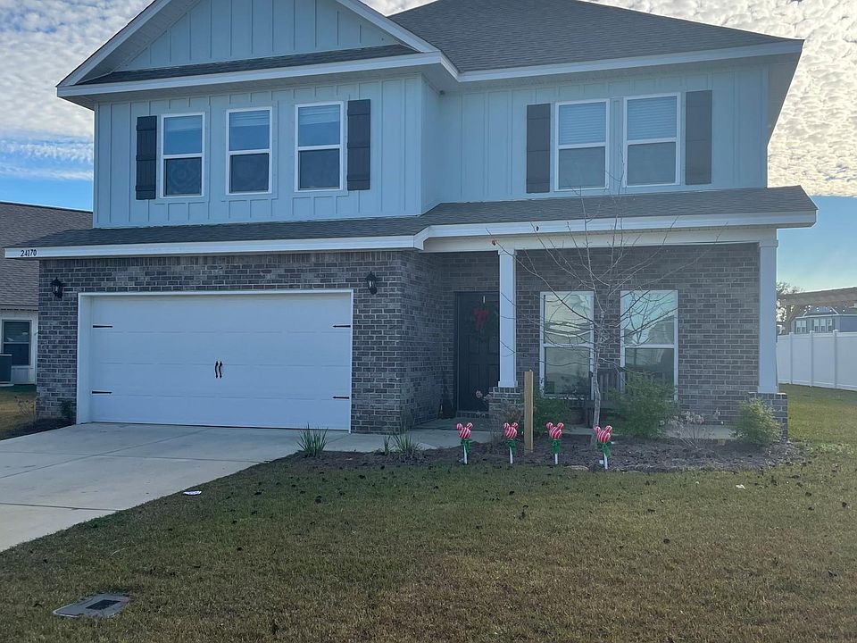 Available May 1st. Beautiful 2 Story home with first floor master suite, open living room dining/kitchen, second living space with bonus area, large bedrooms, three and a half baths and covered patio. This home is located in the resort style neighborhood of Jubilee Farms, just minutes from shopping, restaurants, and I-10. Enjoy many amenities in this community including: a large pool, separate adult pool,water slide, splash pad, gym, yoga room, fire pit, grill area, playground, parks and more. Energy Efficient and equipped with smart home technology. House sits on one of the larger lots in Jubilee Farms. Construction on the home was completed November 2020. New Refrigerator, Samsung washer and dryer included. Trash Pick up service and Sewer included in rent. Non-Smoking $2850 Deposit $400 Non-Refundable Pet Fee Per Pet (Max of 2 Pets, approved breeds only) Address Listed is for the Clubhouse, Actual is 24170 Alydar Loop Daphne, Al 36526 Owner pays for sewer and trash pick up. Dogs must be approved breeds. Max of 2 pets with $400 non refundable pet fee per pet. No smoking.