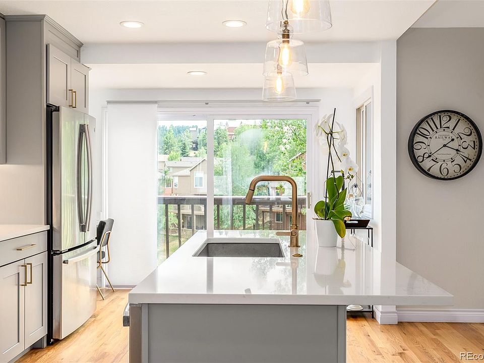 Welcome to this exquisite 3-bedroom, 3-bathroom mountain retreat nestled in the highly desirable community of the Village at Genesee in Golden, CO. Perfectly positioned just moments from Denver to the East and the tranquil Rockies to the West, this stunning home embodies the perfect blend of urban convenience and mountain serenity. The main floor features a primary bedroom with a 5-piece en-suite bath, complemented by a redesigned open-concept layout. Here, a beautifully updated kitchen flows seamlessly into the sunlit living room, graced with vaulted ceilings, skylights, and a charming wood-burning fireplace. Step through one of the 2 sliding glass doors onto the expansive elevated deck, overlooking open space frequented by Colorado's native wildlife. Descend to the finished basement where you'll find another living area with a second wood-burning fireplace, walk-out access to a covered patio, two additional bedrooms, and a full bathroom. Beyond the home, the community amenities are abundant, offering an outdoor pool, clubhouse, tennis courts, fitness center, playground, and more. Don't miss your chance to own this rare combination of modern comfort and mountain allure. Schedule your tour today and envision life at the intersection of city sophistication and natural beauty.