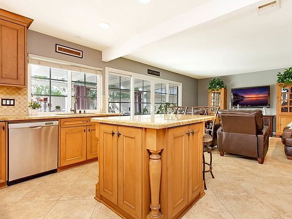 Just in time for the holidays! No Association Fees! This gorgeous 4-bedroom / 2.5 Bath Lake Forest home in the Wood Leaf community features endless upgrades inside and out. The main entry welcomes you to soaring high ceilings and plenty of natural sunlight. Enjoy cooking or hanging out with friends and family in the fully remodeled kitchen that features custom cabinets, a built-in island, granite counters, stainless appliances, and a gas cooktop. Relax in your spacious master suite that offers high ceilings and lots of sunlight. All bathrooms have been fully remodeled to include new cabinets, granite vanity tops, custom tile floors, walls, and showers, and brand new low flow toilets. Additional upgrades include the central AC, roof, windows, and patio cover. Play, relax, and entertain in your large, private, backyard and covered outdoor patio. The property features impressive palm trees and assorted fruit trees (Lemon, Apricot, and Mandarin). One block away is the popular Mountain View Park offering two tennis courts, a basketball court, large ball field, picnic shelter, and a fun playground for the kids. Conveniently located near shopping, dining, parks, the 5 freeway, and just a short drive to the beach, this home is in what is arguably the most desired location in South Lake Forest. Experience this property soon as it wonât last long!