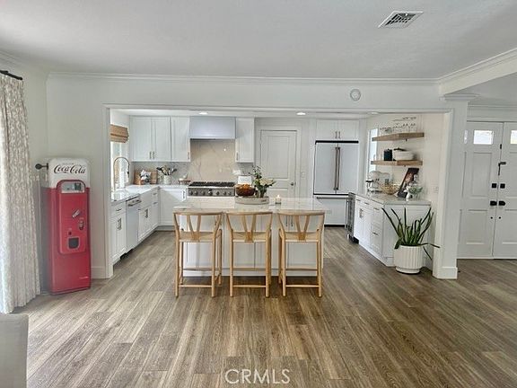 Fabulous single-level home in Laguna Niguel Sea Country on a considerably large lot. A Light and Bright home with 3 bedrooms, 2 bathrooms plus a huge pool and spa. The home’s features include a new roof with solar panels, exterior paint, a heater, air-conditioning, ductwork, and an electrical panel. Walk under the tongue and groove paneled porch to an open-concept living with a fireplace visible to the kitchen, dining, and living room. The kitchen remodel includes a large island with porcelain slab countertops, a coffee bar with a beverage center below, a Franke farmhouse sink, high-end GE boutique Café Metro appliances, with the microwave/convection oven tucked beneath the center island, 6 burner range, and matching dishwasher and refrigerator. The home has a large two-car garage—beautiful custom window treatments in the kitchen, dining, living room, and primary bedroom. Home is minutes to our famous local beaches, shopping, world-class restaurants, and freeway. Solar panels costing $30,000 will be yours, paid for by the seller. The primary bath hasn't been updated as well as landscaping.