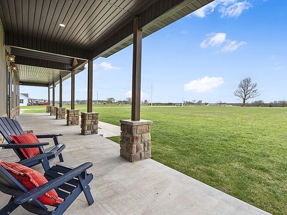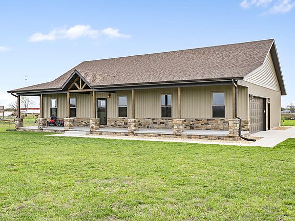Enjoy peaceful country living just outside of town with this 3 bed, 2 bath home on 3 acres right across from Marionville High School! Step inside to find vaulted ceilings, modern finishes, and a cozy electric fireplace in the living room. The kitchen is well-equipped with an island, pantry, and plenty of space to cook and gather. The split-bedroom floor plan includes a spacious master suite with a walk-in closet that connects to the laundry room for extra convenience. The master bath features double vanities, a walk-in shower, and a relaxing soaking tub. There is also a small office space, perfect for working from home or keeping things organized, and the second full bath also offers double vanities. Outside, enjoy a covered front and back porch - perfect for morning coffee or evening sunsets. Need more space? The 30x40 shop is a great bonus, offering a 625 sqft garage and 574 sqft of finished living quarters, including a full kitchen, bathroom, and 2 bedrooms--ideal for guests, a rental, or multi-generational living. This property has a lot to offer - room to spread out, space to work, and modern comfort throughout.