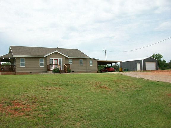 This is a cute 1585 square foot wood frame home on Bethel Road with 3.85 acres that is priced to sale. Lots of potential for the right family. Some original hardwood floors throughout. Spacious rooms for the kids and good size master bedroom and bathroom with an updated big deep tub. Spacious kitchen with island. Aerobic septic system pumped 2 weeks ago. Heating and cooling serviced a month ago. Roof is about 5 years old and in great condition. We are in the process of painting the interior a light grey with white trim and so far it looks gorgeous. Brightens it up beautifully. Outside there is a two car carport to protect your vehicles from the elements. Also a good size shop for the man of the house. Great neighbors that aren't too close but not too far. Enjoy the big deck sipping on your favorite drink enjoying the peaceful country scenery. This home could be approved for a USDA rural Loan. I posted a picture of the living room looking into the dining room and kitchen entry with the new paint job. The rest of the interior pictures are from before we bought it, but gives you an idea of the layout. We will post more photos as soon as we finish. This is a great home! If your interested you can contact me at 405-695-8118. Text or call. Or email me at beth6580@aol.com