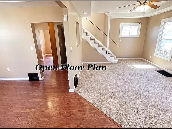 Open floor plan concept on main level. Large living room with updated carpet, windows, and paint flows into the dining room separated by only the newer laminate flooring. Cut energy costs by taking advantage of the abundance of natural light. The updated kitchen and extra counter space and cabinets make this an ideal area to be inspired to cook or bake your favorites items. The spacious three bedrooms and updated bathroom are located on the second floor. There is potential to add more living area in the unfinished attic and basement areas. The backyard oasis is surrounded by a wooden privacy fence with a private entrance into the one car garage. Imagine sitting on the covered front porch, taking in some fresh air and just enjoying the moment. Welcome Home!! Renter responsible for all utilities including sewer and trash. Renter also responsible for lawn maintenance and snow removal. Small pets are allowed with a pet deposit.