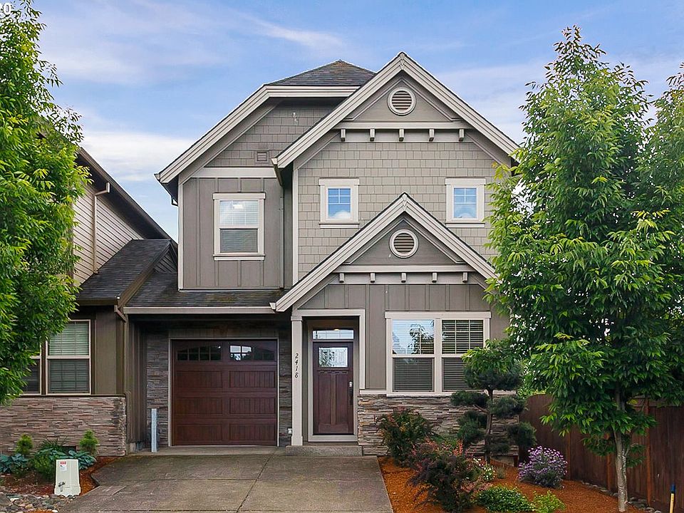 Built in 2013, this Forest Grove two-story townhome offers a patio, stainless steel appliances, granite kitchen countertops, a fireplace, and a one-car garage. This home is vacant and cleaned regularly.