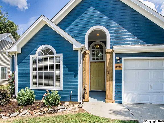 HIGH CEILINGS, PALADIAN WINDOWS & FLOWING WOOD FLOORS will greet you at this lovely home in Huntsville. Great room also has a fireplace w/mantle & tiled hearth...perfect for a cozy night in! HUGE gourmet kitchen has plenty of countertops/cabinets, pantry, work desk & 2 breakfast bars. Beautiful tile floors. Master w/trey ceiling. Level lot w/privacy fence, trees(some peach) & XTRA garage storage.