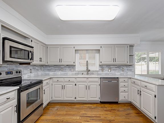 Stunning 4 Bedroom, 4 Bath Home in Midtown This freshly painted residence features hardwood floors and an abundance of windows. The updated kitchen is equipped with new stainless steel appliances, granite countertops, and a spacious walk-in pantry. The primary bedroom offers wall-to-wall carpeting, large windows, and direct access to the backyard. Its ensuite bath includes double vanities, a Roman tub, a separate shower, and an upgraded walk-in closet. A second primary suite boasts large windows, a concealed office, a walk-in closet, new lighting, and a standing shower. Bedroom 3 comes with an updated tiled shower, vanity, and two closets. The oversized family room is filled with natural light which showcases hardwood floors, and features a cozy fireplace. The oversized laundry room has tons of storage and can accommodate 2 sets of washers and dryers. Step outside to a large backyard that includes a double shed, a treehouse, and new decking.