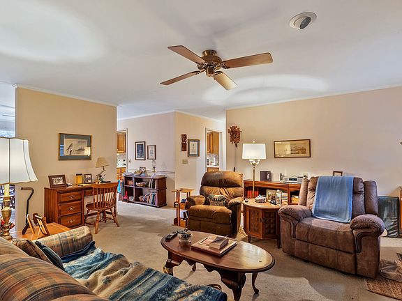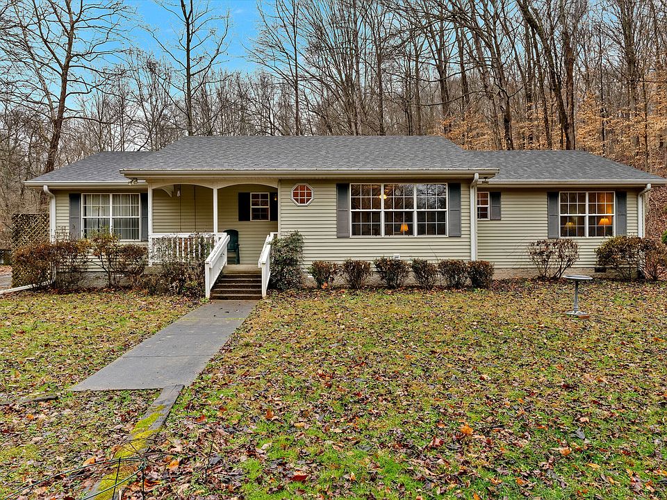 Country roads take me home...Ranch home on 10 acres with entry leading to 3 bedrooms & 2 baths, spacious living room and dining room, kitchen with plenty of cabinet storage and countertop workspace, office or craft room and covered deck. One level living with zoned bedrooms.