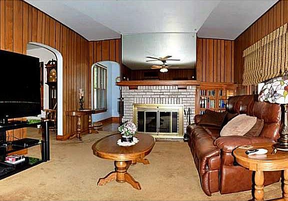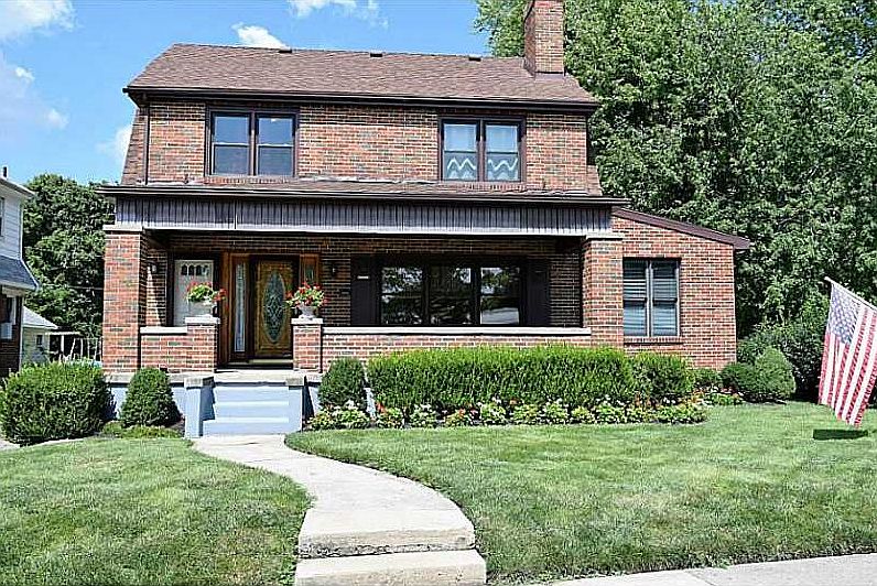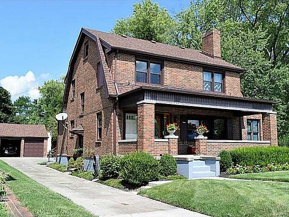 Awesome 2 story, 3 bedroom, 3 full bath, brick home with loads of space. Large living room with wood burning fireplace flanked by built-in book shelves. Main floor study/den totally remodeled & hardwood floors. Large kitchen with formica counters, stainless steel sink, pantry, portable dishwasher. Full bath on main floor. Great semi-finished basement with mini kitchen-sink, range, refrigerator. Large space for table & chairs. Large front porch with vinyl soffet. Cement drive with large turn around section. Huge space behind garage for garden. 4 car garage (tandem), newer garage doors. Roof is 5 years new (house & garage). Furnace & A/C-12/2015. Copper plumbing. 4 newer windows on 2nd floor across front. 2nd floor bath updated in 2016 (ceramic tile floor, walk-in shower & vanity).