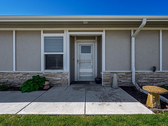Beautiful patio home boasts 1506 SF of luxurious living space with a modern & sleek design that is both accessible & welcoming. This home is designed with a zero-entry, which means no stairs or steps to enter, making it the perfect design for anyone who needs or wants easier access to their home. The spacious open floor plan makes it easy to entertain guests & provides a stylish contemporary living space. The large primary suite features a walk-in closet & an ensuite bathroom with accessible roll-in indulgent tile shower & adult height vanity. The guest bedroom includes a built-in murphy bed with new queen mattress so it can function as a craft room or as a comfortable guest bedroom with 3 closets & attached full bath. The extensive custom kitchen includes 15" deep raised uppers for added storage, lots of pull-out shelves, soft close drawers, and a chef's delight conduction range. There is desk & file drawer cabinetry in the mudroom & the large laundry is a concrete safe room. The floors are cozy & heating costs reduced in colder months by the floor hot water heating. There is a custom stationary stairway to the 8x22 storage area on the south end of the attached garage. The clubhouse has exercise facilities and serves for community dinners/bunco/game watching parties.  Super reasonable HOA dues & LOW specials are bonuses. The complete combination of affordable luxury, comfort, & convenience in a vibrant & welcoming community.