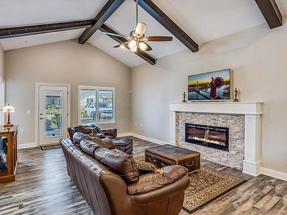 Welcome home to the Madison Garden Villas. This gated, zero-entry patio home was designed to accommodate a maintenance free lifestyle. The open floor plan allows for easy entertaining with family, friends, and neighbors. Vaulted and beamed ceiling, 50" touchstone fireplace, wall to wall Hydro heated floors add to this luxury home. The granite counters throughout and a pristine open kitchen with upgraded cabinets and white trim. This "Smart Design" home is energy efficient with low utility bills, low cost of insurance, low taxes, and low maintenance. The owner's suite is its own personal oasis with large, full tile walk-in shower and custom walk-in closet. The guest bedroom has built in shelves and is connected to the guest bath and living space. The mud room has a granite desk with a built-in filing cabinet and large closet for storage. The separate room for laundry doubles as a concrete storm shelter for your safety. The two-car garage is finished with an insulated garage door, epoxy floors, and storage loft. Finally, the covered patio includes a wrought iron fence and grass to welcome your furry companions. The Villa's HOA offer nearly a mile of walking trails, exclusive park access, two reflection ponds, a 2000 Sq. Ft. community clubhouse with full kitchen, a private 24-hour fitness center, mowing, snow removal, exterior maintenance, and provides the exterior hazard insurance. Schedule your showing today because this beauty will not last long!