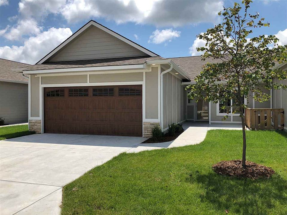 Come see what all of the excitement is about! Derby's newest maintenance free community just got better! This slab on grade condo features two large bedrooms, two full sized bathrooms, heated flooring throughout, an open and bright kitchen, and plenty of space to make it your own! Private master suite boasts a huge walk in closet, and secluded retreat area for relaxing or reading, and a gorgeous bathroom with a walk in tile shower and double vanity! Hidden safe room/tornado shelter behind master retreat will give you peace of mind during tornado season. You won't want to miss this one!