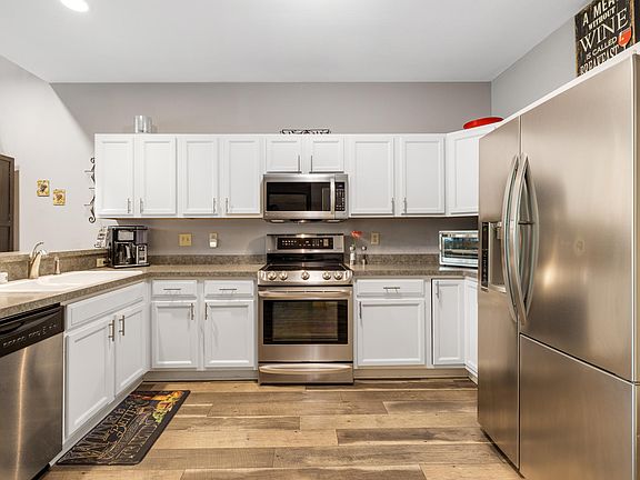 3 BR townhome style Condo available w/private entrance & 2 patios w/views of conservancy. This corner unit faces SW to allow sunlight in all day through the full size casement & transom windows . Main floor features open concept LR, DR & KIT, MBR suite w/WIC & private full bath, powder room, pantry, storage closet, laundry & 2 coat closets. Upper has another MBR w/WIC, dual entry full bath w/separate vanity, BR2 & loft area. Attached 2 car garage w/2 add'l spaces in front of garage. Updates include SS appliances, freshly painted throughout, water softener, garage door, laminate wood flooring, all cabinets & doors freshly painted, all windows, patio door & storm door & all faucets . Step out your front door & enjoy the amenities of the Fox River Trail. Close to Sunset shops & restaurants.