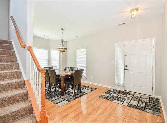 This house offers an open floor plan with lots of space to entertain your guests. The kitchen features granite countertops and stainless steel appliances. Hardwood floors run throughout the main level with carpet on staircase and upper level. Home features a large master bedroom and large master bath with oversized shower and dual vanity sinks. 2 secondary bedrooms upstairs as well as laundry and another full bath. Fresh paint throughout the house. Hard to find large level lot in this area that is open in the front with trees in the back. Enjoy the large deck while grilling out. Playground will also convey with new owners. Home is on a culdesac which offers minimal traffic. Wonderful neighborhood as well as location. You can get to Monroe bypass and 485 in just minutes. This home is a must see for even pickiest buyers.