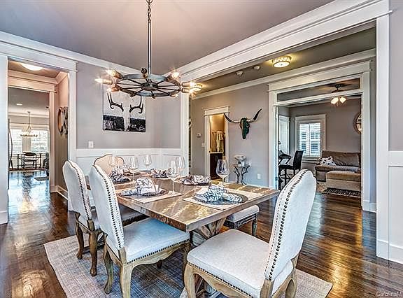 Stunning newer construction 4 bedroom, 3 bath home perfectly located in Chantilly. A rocking chair front porch overlooks the mature tree-lined street, and as you enter the home, gorgeous hardwood floors and high ceilings immediately greet you, and planation shutters are throughout the home. The formal dining room has a butler's pantry into the kitchen, which features a large kitchen island, pantry, and quartz countertops. The kitchen is open to the living room for easy entertaining. One secondary bedroom on the main floor has a full bathroom attached. Upstairs, the expansive owner's suite features a massive walk-in closet with built-ins, and an ensuite with a glass-encased shower, soaking tub, double vanity. The remaining two bedrooms share a jack-and-jill bathroom. There is also a covered deck that leads to a spacious fenced-in backyard, and an irrigation system. Within walking distance to Elizabeth and Plaza Midwood, and minutes to Uptown, this home is a quiet oasis in the city.