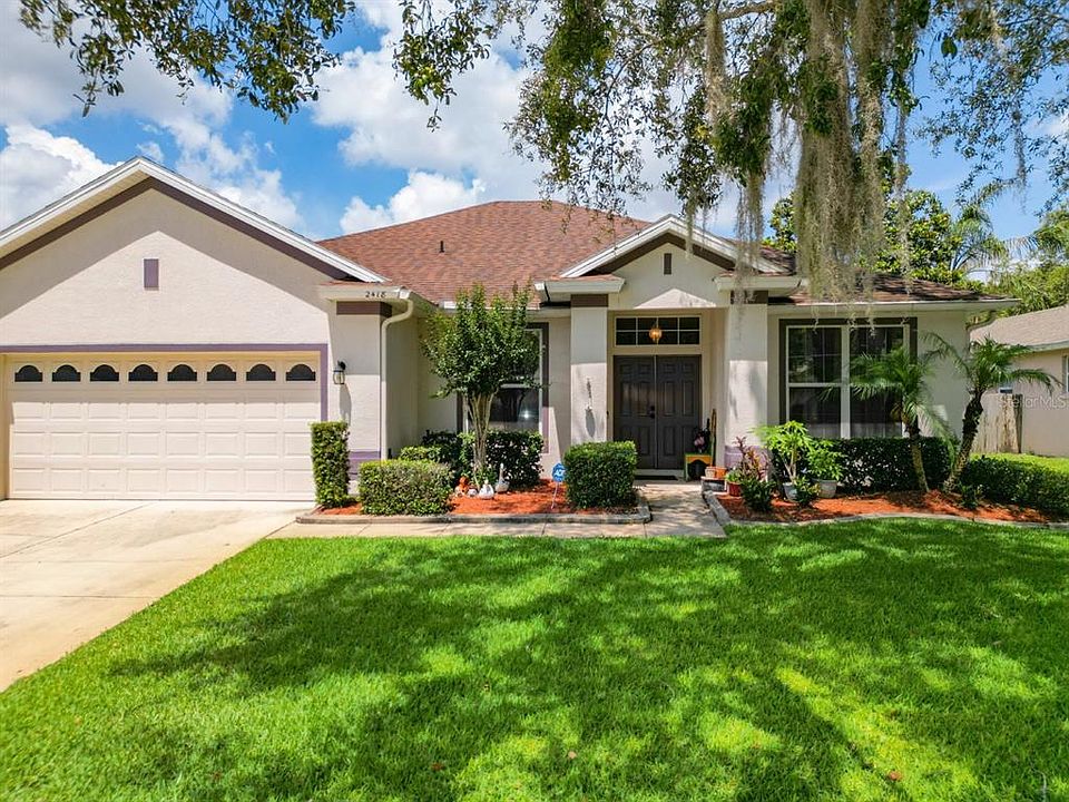 Featuring amazing curb appeal with manicured lawn and landscaped to perfection, this UPDATED POOL HOME should be #1 on your buyer’s list ** At entry, the Formal Living & Dining Rooms have Wood Laminate Flooring, with Tiled Foyer that leads to the Spacious Family Room & Kitchen ** The Large Kitchen has been UPDATED with ONYX GRANITE COUNTERS, some newer Appliances, walk-in Pantry w/extra shelving, Breakfast Bar Seating, Under-counter lighting and convenient Casual Dining Area ** Wood Laminate Flooring graces the Split-plan Bedrooms w/Large Owner’s Suite featuring an UPDATED OWNER’S BATHROOM w/Dual Sinks, updated lighting, Garden Tub, REMODELED WALK-IN SHOWER, Water Closet & Spacious Cloths Closet ** Bedrooms #2 and #3 share the Updated Spare Bathroom w/sliding tub & shower enclosure, and Bedroom #4 has the POOL BATHROOM just outside, similarly updated w/Dual Sinks, and RETILED Tub/Shower ** Best for last: A Covered Lanai overviews the large (solar-heated) SCREENED POOL ** There is still room in the backyard for pets or play, and backyard is FULLY FENCED ** ROOF REPLACED in 2016 ** Seller is giving a $10,000 closing cost credit to buyer, to assist with buyer closing costs ** The (hardwired) Ring Doorbell, Ring Camera, Nest Thermostat and Rainbird ESP (app-controlled) Sprinkler Controller all convey with sale ** Room sizes are approximate and may be verified by buyers ** Sellers have used this property as a vacation home and it is in wonderful condition. A 4/3 pool home in this price range is a very rare find! ** BE SURE TO VIEW THE 3-D TOUR !!