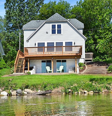 GORGEOUS WATERFRONT HOME! This 3 bedroom and 2 full bathroom home has been completely updated. Everything is fresh and new. The living room has spectacular views of the lake and a sliding door to the new, large cedar-tone deck overlooking the water. The kitchen has new stainless steel appliances, white cabinets, and a large breakfast bar. The kitchen is open to the dining room to take in the views of the lake as well. The 3 nice size bedroom are upstairs with a spacious bathroom with dual vanity. The basement is a huge walk out with 2 sliding doors which open to a covered patio. Front of the house has a versatile 3 season room. Newer roof and windows. The first-floor laundry room could also be converted to a main floor bedroom. All the work has been done for you. Great home for year-round living or the perfect lake house getaway. Motor boats with 25 hp engines welcome on the lake. Great fishing for Bass, Perch and Northern Pike. Currently no exemptions on taxes.