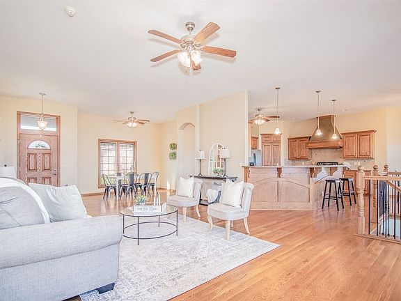 Welcome home to the 18th Hole on The Derby Golf and Country Club! Expansive views from the Covered Deck. Enjoy the Fenced yard with Sprinkler, Well and Sports Court. If basketball isn't your thing the court could easily be transformed into another entertaining space/patio. NIES Built RANCH! Home has been all professionally painted inside for a neutral decor. Formal Living and Dining Space plus an Expansive Kitchen with Granite and room for lots of bar stools at the island bar and dine-in space. Stainless Appliances, Walk-In Pantry and Under Cabinet Lighting! Main Floor Boasts Real Hardwood Floors! Master Bedroom has the convenience of a Large Walk-in Closet with connection to the Main Floor Laundry! Mid Level Walk-Out to Full finished Basement with Stained Concrete Floors for easy clean-up with Spacious Wet Bar! Over sized 3 Car Garage with Steel Cabinets, Sealed Floors and plus More Storage! Safe Room! Central Vacuum! Heated Lights in Master Bath! Located a very short walk from the amenities available to members of the Derby Golf and Country Club, including 18 Hole Championship Golf Course, driving range, large swimming pool and sundeck, 10,200 sq feet luxury clubhouse featuring grill room and fitness center. Wow! This home, in this neighborhood, at this price will knock your socks off!