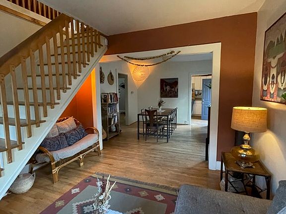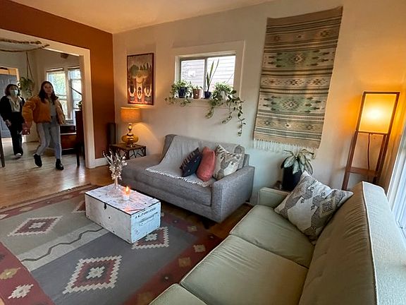 Rare Find! 3 bedrooms + 2 bathrooms. The main floor has 2 bedrooms, 1 bath, a living room, dining room and kitchen. Private bedroom/suite and open living space upstairs with own bathroom. No pets, please. Skylights, wood floors, partial basement, off-street parking. Walker's Paradise - score 96, Biker's Paradise - score 100. Available May 1, 2025. No smoking, no pets please.