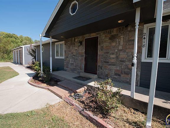 Country living; city convenience! 7 miles to Topeka & 15 to Lawrence. 3600 sq ft finished, breezeway w/hot tub leads to att 3 car gar, + a 30 x 24 detached outbuilding. Kitchen features custom cabinetry, island, beautiful hutch, & hdwd flrs. Spacious LR w/cathedral ceilings. Primary BR suites to a full BA. LG rec rm in bsmt, unfinished storage space, spa like bath w/jet tub, & a bonus BR (no closet). 5.32 acres w/a nice NEW deck & a new fence on a portion of the backyard. Time for your move to the country!