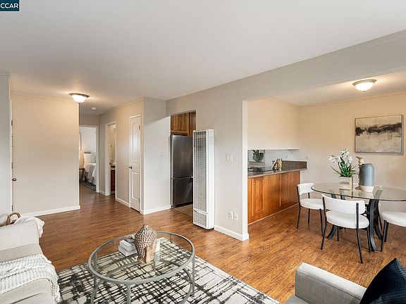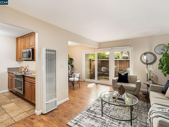 Step into your ideal mix of comfort and convenience with this inviting 2-bedroom, 1-bathroom ground-floor condominium. Warm laminate flooring greets you, blending with the kitchen's rich wood cabinets to create a heartwarming atmosphere. Stainless steel appliances in the kitchen bring a modern elegance to your culinary space. The designers have crafted the layout with a cozy yet open feel, ensuring a perfect balance of privacy and spaciousness. Enjoy your serene retreat on the private patio, perfect for morning coffee or evening relaxation. The complex enhances your convenience with a covered parking spot, a communal laundry room, and a pool for refreshing swims on warm days. This condo, located in the tranquil Gregory Gardens neighborhood, offers a peaceful haven while remaining mere minutes from the bustling downtown areas of Pleasant Hill and Concord. The proximity to the 680 freeways makes commuting or weekend outings a breeze. Discover a home that marries leisure and accessibility, eagerly awaiting to welcome you.