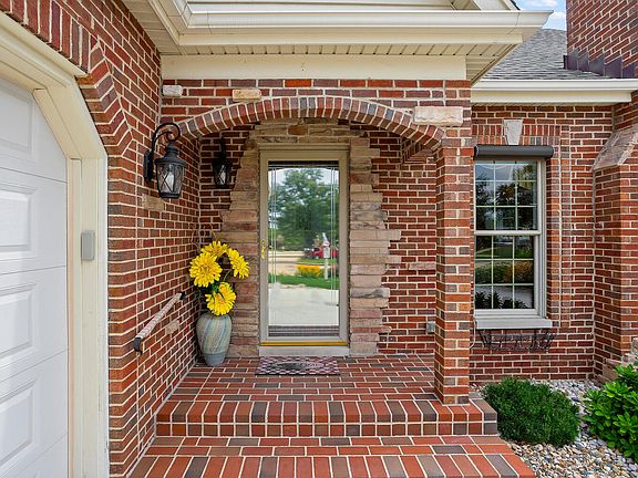A grand entrance foyer will gracefully usher your guests into refined living spaces adorned with glistening hardwood floors, all harmoniously flowing in an open floorplan design. Numerous high end touches abound, including elaborate crown molding, a granite-topped island, and elegantly footed cabinetry in the generously sized eat-in kitchen. The formal dining room is enriched with picture molding, and French doors swing open to reveal the inviting sunroom, featuring a brick floor that imparts a timeless charm. The generously proportioned master suite stands as a sanctuary, offering the luxury of dual walk-in closets and a European-inspired shower with a graceful glass block wall. Descending to the basement, you'll discover a capacious family room complete with a well-appointed wet bar, an ideal setting for hosting gatherings. Additionally, the basement encompasses a third bedroom and a bathroom, establishing a secluded space for visiting guests, complemented by a sizable storage area for your belongings. Facing east, a screened porch beckons, creating a serene spot for morning coffees and temperate evenings. Its backdrop opens to the lush expanse of a Champaign Park District Green Belt, enhancing the sense of tranquility and connection to nature. This home offers an aura of sophistication, from the stately foyer to the unique features and gracious living spaces. The fusion of elegant design and functional elements creates an inviting home, perfect for both refined living and entertaining.