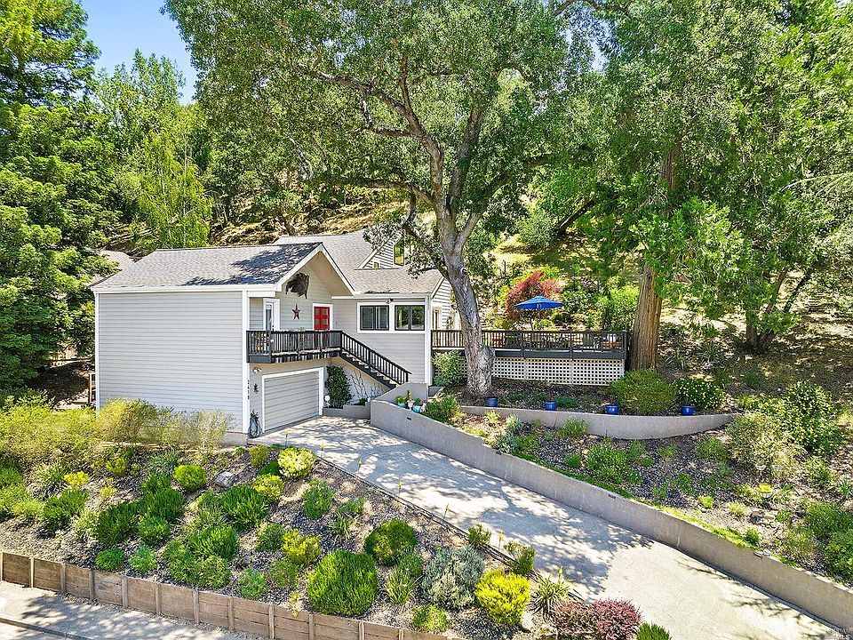Welcome to a stunning contemporary home situated on over a half acre, offering a sanctuary for in-town privacy. Soaring ceilings and enormous custom windows reflect serene views of the surrounding hills and bring abundant natural light. Enjoy warm and inviting interiors! Every room in the house is unique and has access to the outdoors, allowing you to easily enjoy the lush grounds. The residence is full of custom charm and exudes character along with high quality updates. The private primary suite - in its own wing - features a separate deck, perfect to enjoy your morning coffee or evening glass of wine. The kitchen has been renovated with modern cabinetry and a large island, and the great room offers light from every direction and doors to the large entertaining deck and the grounds. The mature landscaping includes walking paths, fruit trees and areas to enjoy nature. This home and highly desirable neighborhood have great options for those who like to walk, with the Town & Country Center just blocks away. Don't miss out on the opportunity to make this special home your own!