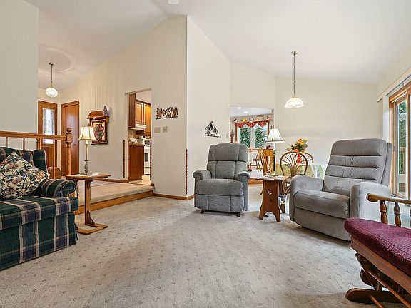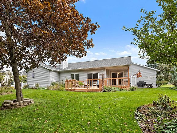 Beautiful Ranch Home! 3 bedrooms, 3 baths, 2 car attached garage and over 2000 square feet of finished space ready to be loved by new owners. Tiled bathrooms, showers, kitchen and dining area. Natural brick fireplace in living room with vaulted ceilings. Two sliding doors heading to the wood deck overlooking a yard filled with beautiful nature. Basement rec room, full bath, wood working room and plenty of storage. Main floor laundry. Master bedroom features a walk-in closet and a master bath with oversized tiled shower and dual vanity. Come see this new home waiting for its new owner!