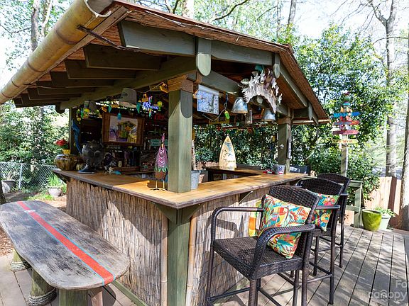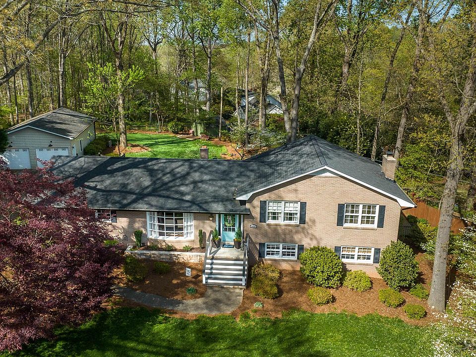 Beautiful home located in the highly desirable Shiland Hills, with community pool. This rare opportunity boasts a stunning and private yard, featuring a hand-built tiki hut and grilling shed. In addition, this property has an oversized detached 2-door garage that can fit 4-tandem vehicles. The original garage has been turned into a stunning oversized screened porch, perfect for those beautiful Carolina nights. Inside, you will find a stainless kitchen, solid cabinets, granite countertops and an open floor plan looking through the dining room and out the beautiful front bay window. On the upper level you will find 3 bedrooms and 2-full bathrooms. The lower level has a large family room with an original large wood-burning fireplace, opening up to the back patio and tiki hut. In addition, the lower level has a bedroom, full bathroom with a newly tiled shower, and large walk-in laundry room. Pictures truly do not show the character and beauty of this home and one-of-a-kind lot and yard.