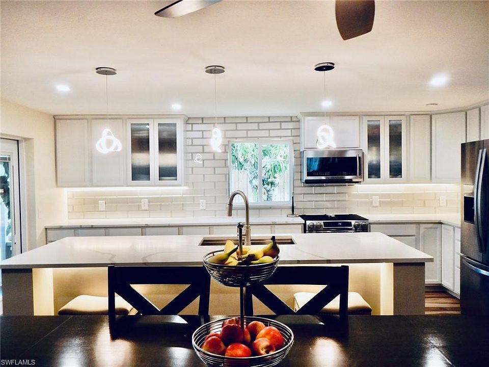 LOCATION...LOCATION...LOCATION~ Come see this completely remodeled Villas home that sits on a double lot in one of the most sought after neighborhoods in Ft Myers. Remodel consists of new roof, new a/c units, low E windows, 12" spray insulation in attic, security system, GORGEOUS KITCHEN and many more. This home also offers a 1200 SF garage w/ 600 SF of air conditioned space. Relax in the beautiful private back yard that has several mature fruit trees. The Villas are conveniently located 20 minutes from RSW INTL airport and some of the best beaches that SW FL has to offer. Don't let this one get away!