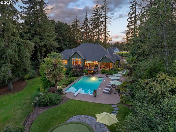 This elegant and luxurious private home located on coveted Gage Rd in the exclusive Stafford area, seamlessly blends indoor and outdoor living with luxury, comfort, and natural beauty. Immerse yourself in this exquisite 4-bedroom, 4.5-bathroom home boasting an impressive 4358 sq ft. of open and elegant spaces, including an oversized attached three car garage, with RV parking and hookup. This architectural treat features thoughtfully curated elements throughout. Cherry hardwood flooring, wood ceiling detail in the living room, and impressive stone fireplace. Enjoy the serene views through soaring ceilings and expansive windows that bathe the home in natural light. The magnificent and spacious primary suite, located on the main level, featuring a recently remodeled grand ensuite bathroom and walk in closet. Gourmet cooks and entertainers alike will revel in the open and expansive kitchen, cherry cabinetry, complete with professional appliances and a formal dining room perfect for hosting dinner parties. French doors lead out to one of two outdoor entertaining areas, offering another fireplace and views of the oversized luxurious pool. The near-acre outdoor spaces are equally impressive with a lush garden, 9.5-foot deep pool with diving board for sun-soaked days, jacuzzi, newly redone putting green, and a sprawling yard perfect for outdoor activities and relaxation. Downstairs, a spacious family room with a wall of windows awaits and radiant floors, alongside three additional bedrooms, one with an ensuite, a home gym, and a theater room. Featuring another outdoor area, perfect for a peaceful relaxing retreat, for you or your guests. With an abundant amenities, this home is a perfect blend of privacy, relaxation, and comfort. Truly a special home, this property is not only a home, it's a lifestyle. Embrace the opportunity to own this remarkable residence. perfect blend of tranquility and convenience in a prime location. See it to believe it!
