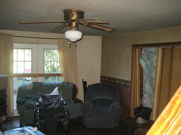 House sits up on hill, private setting. Needs TLC.Dog kennel in side yard.