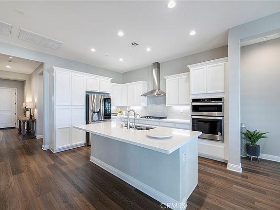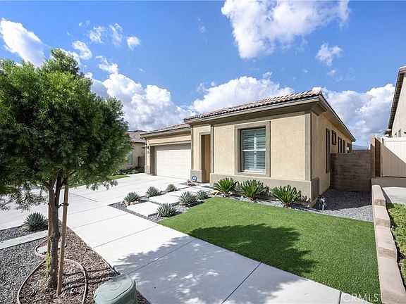 NEW PRICE IMPROVEMENT! Beautiful Single-Story Home with Breathtaking Views in Terramor’s 55+ Community. Welcome to luxury living in the award-winning, resort-style community of Terramor! This beautifully upgraded single-story home combines elegance and ease. The home features a six-panel solar system that’s fully paid off, and brand-new luxury vinyl flooring throughout. The custom-designed primary bathroom offers an upgraded shower, dual sinks, and a spacious walk-in closet. The modern kitchen includes stainless steel appliances, an upgraded backsplash, and convenient pull-out cabinets. A flex room with glass double doors provides the perfect space for a home office or personal retreat. Additional highlights include a cozy fireplace, 10-foot ceilings, and plantation shutters throughout. The home’s two expansive California rooms create an ideal setting for outdoor entertaining, and the built-in BBQ with a waterfall feature enhances the backyard experience. Situated on a staggered lot with artificial turf in the front yard, this home is as low-maintenance as it is stunning. Appliances, including the refrigerator, washer, dryer, are negotiable, and an advanced security system is already in place. The Terramor community offers an exceptional range of resort-style amenities: three swimming pools, craft and game rooms, a fitness center, sauna, fire pits, tennis and pickleball courts, basketball, a sports park, a community bar, garden, dog parks, and various clubs to join. Experience the lifestyle you’ve been looking for in this serene, active adult community.