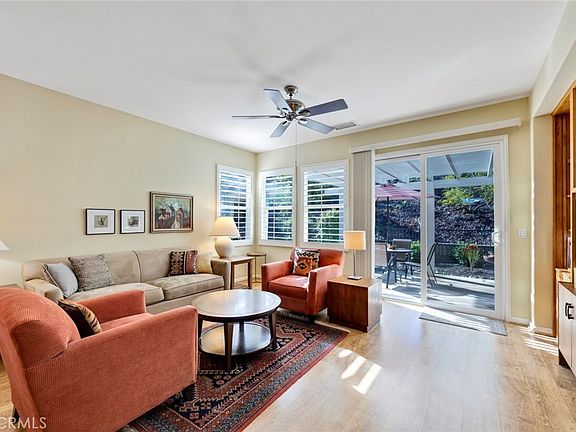 Welcome to this beautiful home in Trilogy, paradise for 55 plus. Lovely 2 bedroom, 2 bath home nestled up in the hills of the Cleveland National Forest. As you enter the home you will be welcomed by natural lighting, 10' high ceilings, and laminate flooring. The kitchen has plenty of counter space, built-in desk and sky light. Perfect living space with built-in entertainment center. The primary bedroom is spacious with large walk-in closet, primary bathroom has dual sinks and walk-in shower. Laundry room inside. Enjoy the back yard whether you are doing a little gardening or having coffee. Trilogy has so much to offer, indoor and outdoor pool, game room, walking track inside, gym, pickleball, tennis and multiple clubs, classes and much, much more. Public golf course. Close to the 15 freeway, Toms Farms, Dos Lagos and The Crossings for shopping.