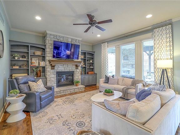THIS HOME IS A FOREST VIEW GEM – and SPACIOUS doesn’t begin to describe this meticulously maintained and cared-for 5-bedroom, 6-bath, 2-story! This completely open floor plan is perfect for entertaining! The kitchen is especially accommodating with its oversized granite island (9x5), an abundance of cabinets, a large walk-in pantry, breakfast area, and a cozy hearth area. The elegant hickory plank wood flooring shines throughout the main level which also offers a formal dining area, great room, and 5th bedroom/bath. Upstairs the spacious primary bedroom offers lots of natural lighting and a sitting area with a fireplace. The primary bath contains separate double vanities and a large walk-in closet leading into an oversized laundry area. All other bedrooms have their own baths and ample closet space. The basement level has just as much to offer including a mini-kitchen area with built-in seating for an eating area, a TV/play area, and a craft room. If the inside isn’t impressive enough, you’ll fall in love with with the home’s exterior including a covered porch featuring a stunning corner fireplace and low-maintenance Trex decking leading to a beautiful high-quality stamped patio. Exterior of home was painted in 2022. All this plus park-like landscaping makes the backyard a true sanctuary. The home is zoned with two HVAC units and the garage is a workshop dream with epoxy flooring, custom cabinetry, and plenty of hanging tool storage. Forest View residents have access to a huge zero-entry pool, water park area, sand volleyball, sports courts, playground, and several grilling/picnic areas. This home offers the perfect blend of space, luxury, and natural beauty. Come see for yourself!