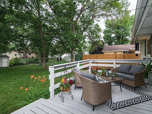 This ranch home offers 2 bedrooms, 2 baths, and a one-stall garage. The 3rd bedroom on the main level has been opened up to the kitchen, but it can easily be converted with a minor remodel. The main level boasts a large living room with plenty of natural light and beautiful original hardwood floors. The galley kitchen has an eat-in breakfast nook and a den/office/formal dining area with a slider leading to the deck. The main level also includes a spacious owner's suite with hardwood floors and a large closet, another roomy bedroom, and a full bathroom. The lower level features a remodeled family room with new vinyl planking floors throughout, a half bath, and a large laundry/utility room with ample storage. The property features a fully fenced backyard with a large deck, new large garden shed and smaller shed, and a one-stall garage. Recent updates include new windows on the main level, an overhead garage door, a water softener, and gutters (2021) and furnace/AC (2013).