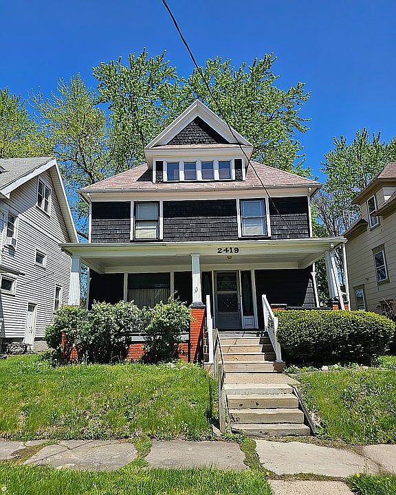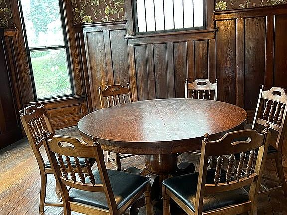 must see all original wood work including Wainescoting in dining room hard wood floors in dining room and living room, with working pocket doors separating the two . Wood swinging doors to seperate dining And butler pantry. Attached mud room with an exit door to back yard. Large Country Kitchen gas stove included, with servant entry stairs access to 2nd. Floor Detailed ornate wood stair case in front room going to upstairs 4 bedrooms 1 bath. Full basement with washer dryer hook up with exit door to side yard. Full unfinished attic with access stairs located in upstairs hall, 3 bedrooms have full large clothes closets, the other bedroom has exit door to small roof area, and counter top with sink.