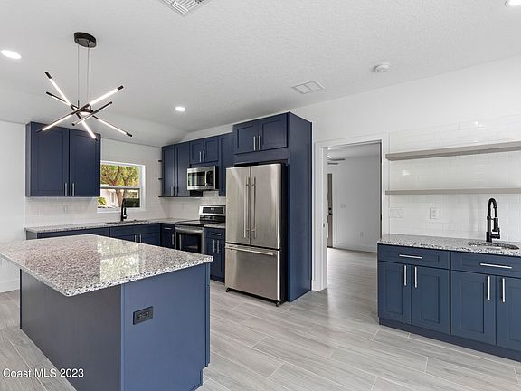 Beautiful Brand New 2022 Construction Built to the new 2020 Building Code. Modern Upgrades Galore in this 4 bedroom, 3 bath home. Two primary suites with own bathroom. Open floor plan with tile throughout, custom designs, Modern Doors throughout, upgraded fixtures and fans. Modern Electric Fireplace with Wall Bracket for your Large Screen TV to hang. Tankless Hot Water heater, Storm Shutters to keep your home Hurricane ready, Brand New Fenced in yard. Plenty of room for a pool! Close to downtown Cocoa Village, restaurants, shopping and beaches!