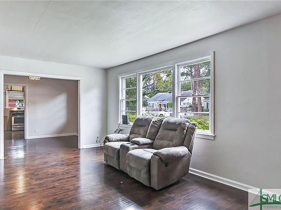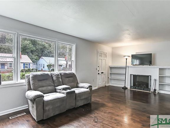 This adorable bungalow is nestled on a quiet block in the desirable Victory Heights community. Step inside to the spacious living room boasting rich hardwood floors, built-in bookshelves flanking either side of the fireplace, and plenty of natural light. The formal dining room features a great storage area for all of your dishes and opens up to the kitchen complete with stainless steel appliances, sleek countertops, and a built-in shelf perfect for spices! Two bedrooms and a full bathroom round out the interior of the home. Out back you'll find a large storage area, firepit, and tons of off-street parking. All of this conveniently located in East Side Savannah, just a short drive to Downtown or the beach!