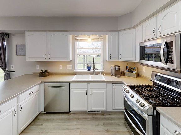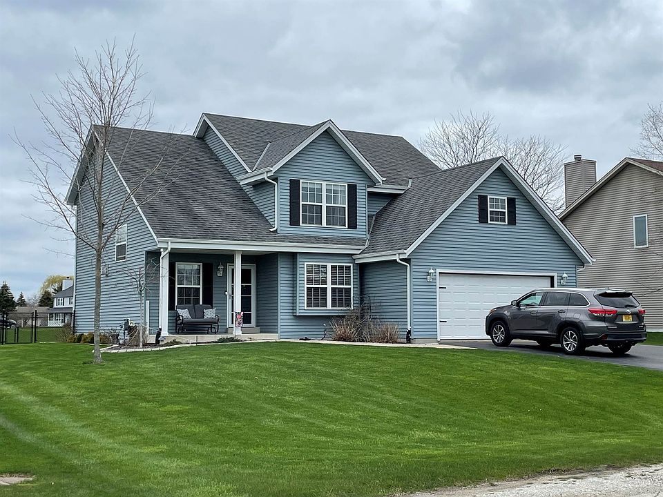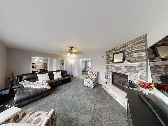 Lovely Kaerek built home, ONLY one owner! The moment you walk in you will fall in love with this open concept Living Room to Kitchen. Flex room on first floor use as a den or maybe a play area. The owner has truly cared for every detail in this home, lots of new upgrades. This gorgeous living room features a gas fireplace and custom stonework. The Kitchen is large and has enough countertops to fulfill a chef's dream. You will find a mudroom and first floor laundry. Move upstairs to Primary bedroom with WIC and bathroom with dual sinks & jetted tub. 3 more bedrooms await you on the 2nd floor. Entertain your guest outdoors with this large patio and fenced in yard, also find a shed too. Too cold for outside cozy up downstairs in this newly created space w/ new carpet. Schedule now!