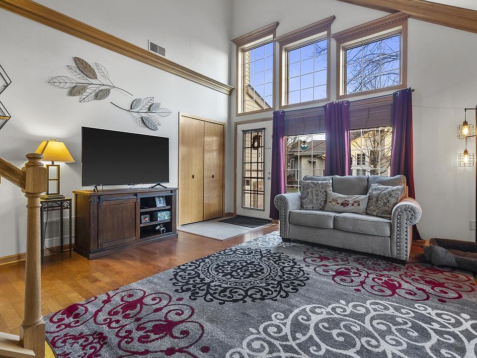 Nestled along the Fox River Parkway, this beautifully maintained, two-story end-unit offers ample space, comfort and convenience in a prime location. This spacious 3BR, 2BTH condo checks all the boxes w/private entry, attached 2 car garage, in-unit laundry, and pets allowed! Desirable floorplan is the perfect balance of function and privacy. LR w/ vaulted ceilings, wood floors and gas fireplace. A cozy bedroom or (flex room) with french doors, a laundry center, a full BR, and large eat-in kitchen with tons of cabinetry finishes the main floor. Upstairs, find two large BR, a loft, and the second Full BTH. 2nd hookup for an upper-floor laundry set! Don't miss this opp to make this updated unit your new home!NEW in 2024: Water heater, kitchen sink/faucet, and dishwasher
